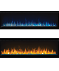 See the fireplace, not the frame with Napoleon’s Alluravision Series linear electric fireplaces. They stand out from the rest with their nearly frameless viewing area which highlights the unique flame colors. Set the mood with yellow, orange, blue and multicolor flames with the push of a button. Easy to use, this electric fireplace is plug and play – just hang on the wall and plug it in. The Alluravision 50 can also be hardwired to 120V and comes standard with a crystal media ember bed and remote control. Napoleon’s Alluravision 50 linear electric fireplace is about adding the fireplace, and not the frame to your favorite room.