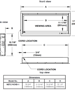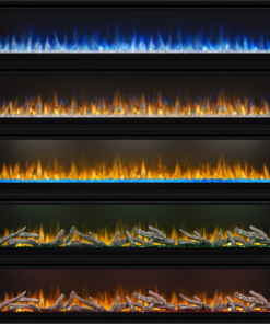 Napoleon’s Alluravision 74 inch linear electric fireplaces stand out from the rest with their nearly frameless viewing area that highlights the unique flame colors. The Alluravision 74 Deep features a soft fade in and out when turned on and off and they can be used as a heater at any time with or without the flame being on. Set the mood with yellow, orange, blue and multicolor flames with the push of a button. Easy to use, this electric fireplace is plug and play – just hang on the wall and plug it in. The Alluravision 74 Deep can also be hardwired to 120V or 240V. The accent lights and driftwood logs with topaz glass embers make beautiful additions to the deep model. Napoleon’s Alluravision Series linear electric fireplaces are about adding the fireplace, and not the frame to your favorite room.