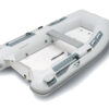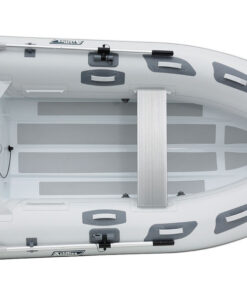 Achilles pearl grey hypalon reinforced fabric with four layer seam construction, powder-coated aluminum hull with non-skid patches (310 has full deck liner), keel guard, fold down locking oar system, interior oar straps (310 only), D-rings for towing bridle, welded bow eye, inside davit lifting bow eye, stern mounted davit lifting eyes, transom towing eyes, carry and helmsman handles, removable rowing seat, extra seat attachment patches (except 240), bailer valve, foot pump, maintenance kit