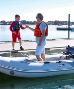 Achilles LSI-330E inflatable boat is one of the larger models offered in the LSI line-up. Available in only light grey fabric, you can expect the same quality and durability as the other models, including the hypalon air deck that rolls up with the hull. Able to accept a larger 15 horsepower outboard, you can plane with up to 4 persons, carry up to 5 persons or loads up 1340 pounds.